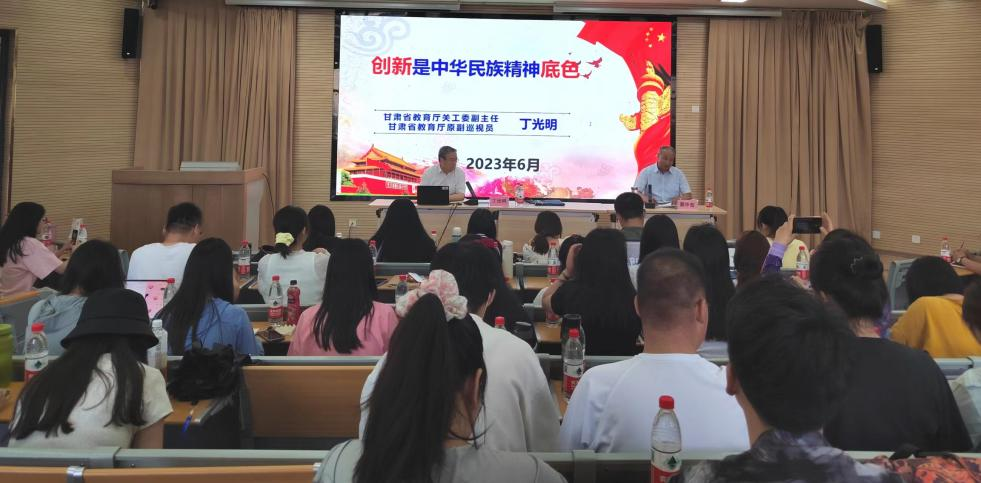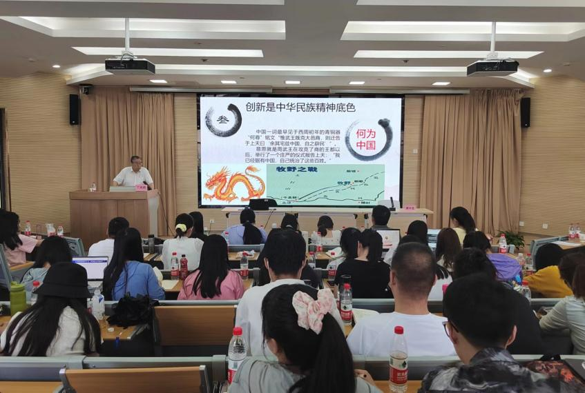 6月15日下午,兰州交通大学“大先生”讲“大思政课”系列讲座第二场报告在马克思主义学院举行,特邀甘肃省教育厅关工委副主任、原副巡视员、甘肃省诗词学会吟诵委员会副会长丁光明先生作了题为“创新是中华民族精神底色”的报告。马院全体师生共计150多人在笃行楼MBA中心报告厅参加了报告会,马院院长蔡中宏主持了报告会。
